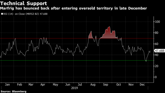 As ações do segundo maior produtor global de carne bovina tiveram queda de cerca de 7% em dezembro, maior recuo mensal em 6 meses e terceiro pior desempenho entre os membros do Ibovespa. O papel foi afetado pela oferta de ações que permitiu a saída do BNDES do capital da empresa.