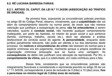 Trecho da condenação de Luciane Barbosa Farias pelo TJAM, em outubro de 2023. FotoTJAM reprodução