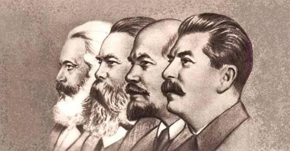 Karl Marx, Friedrich Engels, Vladimir Lenin e Josef Stalin Foto Domínio público
