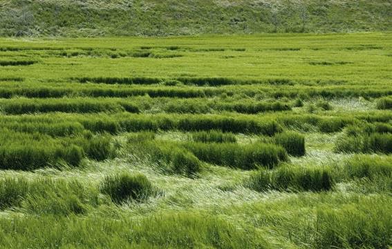 Legenda: O processo de acamamento gera agroglifos "naturais", que tem um padrão aleatório