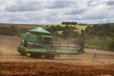 Walter Kashima colhe a soja e, na mesma área, planta milho para a safra do meio do ano. Foto Tiago Queiroz Estadão