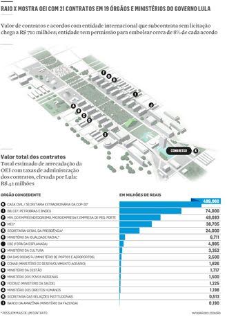 A OEI entrou em evidência por conta do seu maior contrato com o governo federal, firmado com a Secretaria Extraordinária da COP-30, subordinada à Casa Civil. A pasta repassará R$ 478 milhões para o órgão preparar a conferência climática que ocorrerá em Belém (PA), em novembro.