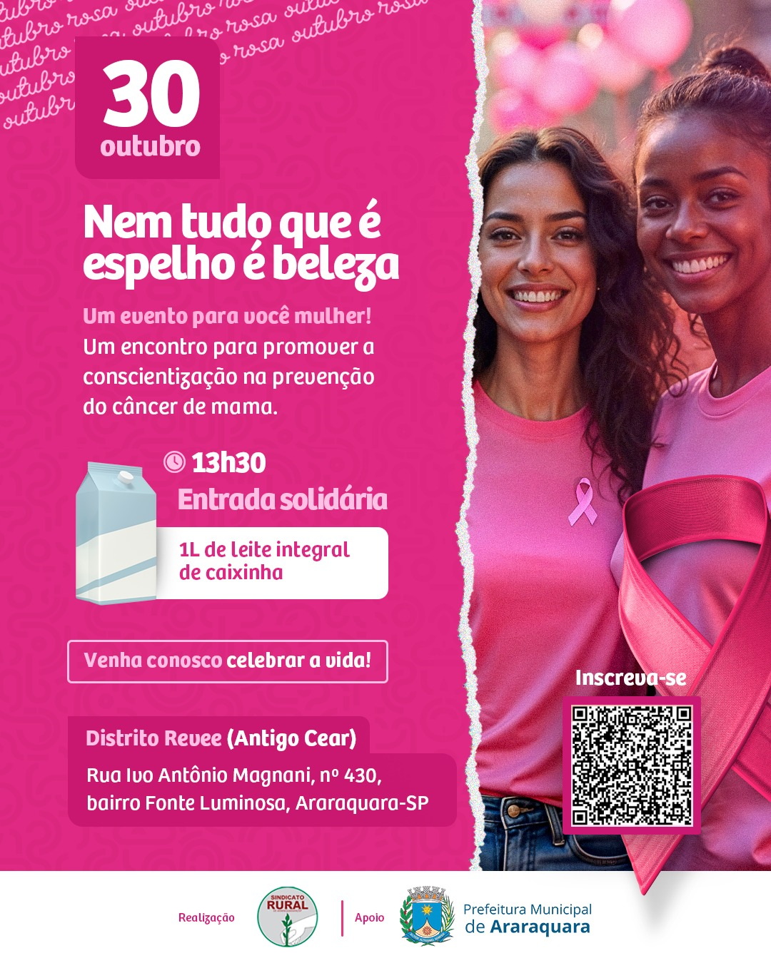 - .No Outubro Rosa, o Sindicato Rural de Araraquara convida você, mulher, para um encontro especial:“Nem tudo que é espelho é beleza”