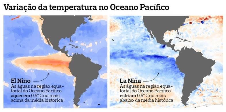 Os fenômenos indicam as variações de temperatura da porção equatorial do Oceano Pacífico. Durante os períodos de El niño, as águas aquecem 0,5 °C ou mais em relação à média histórica. Quando ocorre um resfriamento igual ou maior do que 0,5°C, chamamos de La Niña.