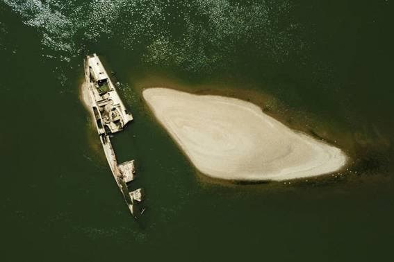 Legenda: Cascos de mais de 20 navios de guerra alemães que afundaram na Segunda Guerra Mundial perto da cidade portuária de Prahovo, na Sérvia, apare Fedja Grulovic/Reuters