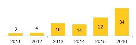 Um total de 34 gigawatts de nova capacidade de geração de energia solar entrou em operação nos 71 países emergentes pesquisados pela BNEF como parte do estudo anualClimatescope (www.global-climatescope.org), divulgado em Shangai durante a BNEF Future of Energy Summit (Cúpula da BNEF sobre o Futuro da Energia). Essa capacidade era 22 e 3 gigawatts em 2015 em 2011, respectivamente. No acumulado, a capacidade de geração de energia solar cresceu 54% em um ano e mais do que triplicou em três anos. A capacidade adicionada em 2016 seria suficiente para suprir a demanda anual de eletricidade de 45 milhões de residências na Índia ou de todo o consumo residencial do Peru ou da Nigéria.