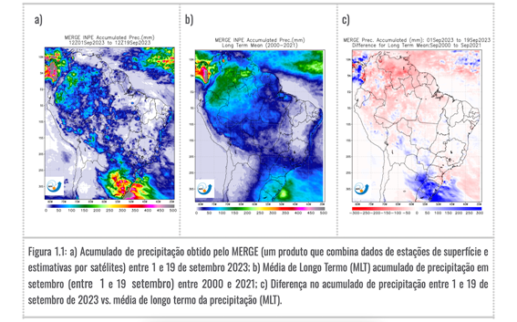 Neste ano, um efeito do El Niño foram as chuvas registradas no Rio Grande do Sul, entre 1º e 19 de setembro, cujos volumes ficaram em torno de 450 milímetros (mm). Nos demais estados do País, foi registrado um déficit de precipitação, com volumes superiores a 50 mm, abaixo da média histórica, na Região Norte.