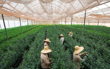 Funcionários da Fazenda Campo Alegre, do Grupo Junqueira Rodas, no interior de São Paulo, trabalham em produção de mudas de laranja em ambiente protegido da doença do greening. Foto Foto Joel Silva/Estadao