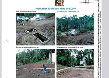 Técnicos da Prefeitura de São Bernardo do Campo registraram, em relatório de fiscalização ambiental, movimentação de terra e início das obras no sítio Los Fubangos, de propriedade de Lula. Fotos Reprodução/Relatório de fiscalização da Prefeitura de São Bernardo do Campo