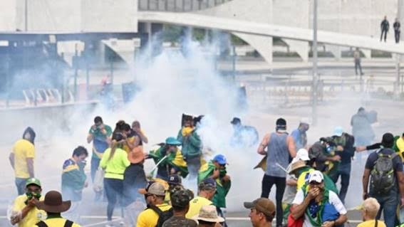 Na Praça dos Três Poderes, veículos policiais chegaram a disparar jatos de água no grupo para tentar dispersá-lo. Também foram usadas bombas de gás lacrimogêneo e de efeito moral.