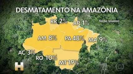 Segundo o Inpe, o desmatamento na região foi de 11 mil km² entre agosto de 2019 e julho de 2020, o que representou aumento de 9,5% em relação ao período anterior (agosto de 2018 a julho de 2019).