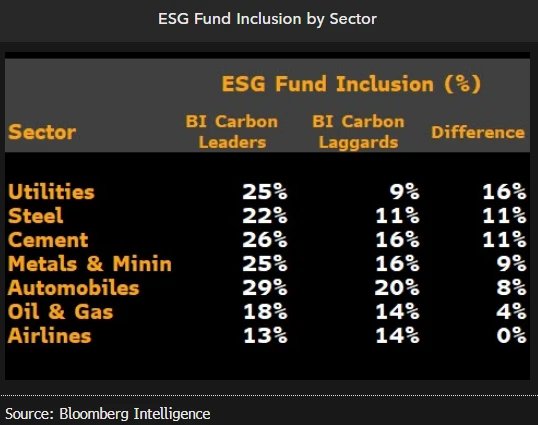 Um alto score de carbono BI significa uma maior inclusão de fundos ESG