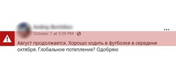 No Facebook, um usuário da Rússia sugeriu – por exemplo – que o clima mais quente no Outono é um resultado positivo do aquecimento global.