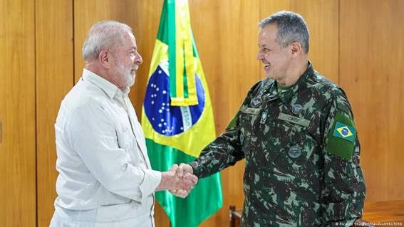 Lula cumprimenta o general Tomás Miguel Ribeiro Paiva, novo comandante do Exército. Foto Ricardo Stuckert Handout REUTERS
