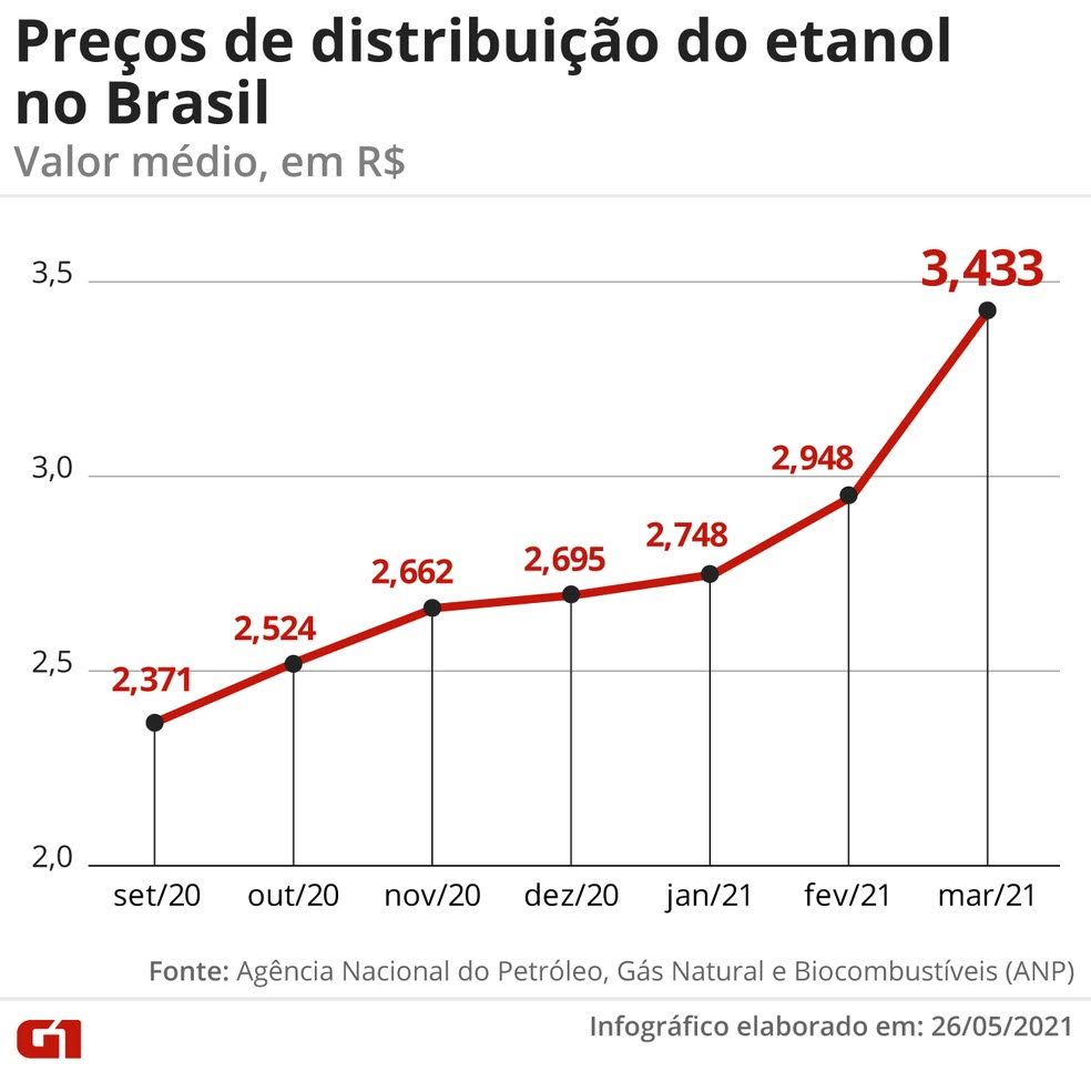 Preços do etanol ao consumidor no Brasil — Foto: G1