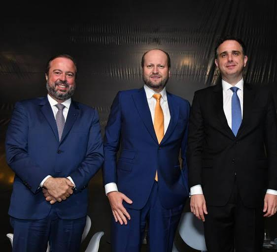 O ministro de Minas e Energia, Alexandre Silveira (PSD-MG) o advogado Nelson Wilians, o presidente do Senado Rodrigo Pacheco (PSD-MG). Foto Divulgação