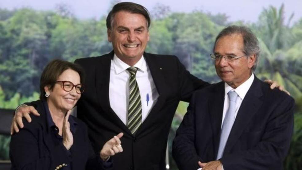 Tereza Cristina, ex-presidente Jair Bolsonaro e Paulo Guedes. Foto Valter Campanato Agência Brasil