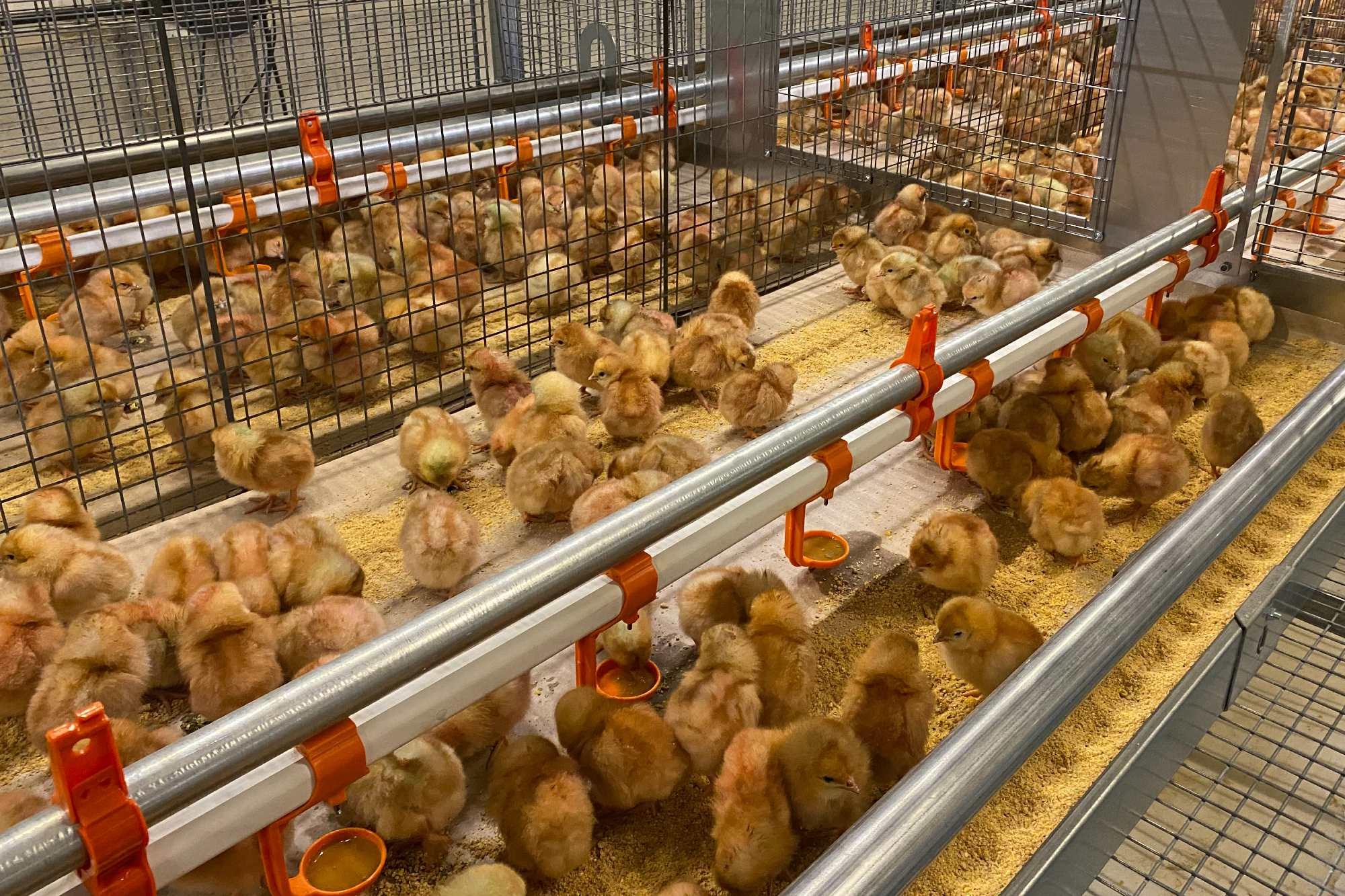 Legenda: Primeiras pintainhas desembarcadas hoje (3) na granja 4.0, construída pelo grupo Mantiqueira no modelo cage free