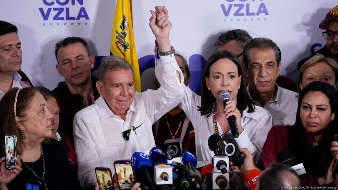 "Vencemos e todos sabem disso. Queremos dizer a toda a Venezuela e ao mundo que a Venezuela tem um novo presidente eleito e é Edmundo González Urrutia", afirmou a líder oposicionista María Corina Machado.