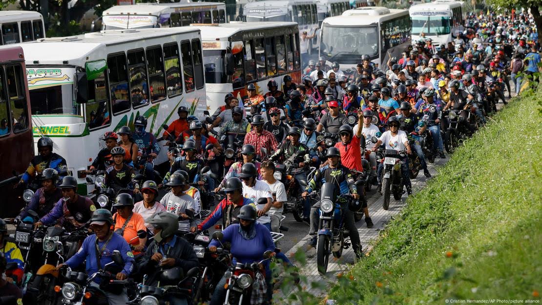 "Motociata chavista". Campanha já havia sido marcada por intimidação, com candidatos barrados pelo regime e ameaças de Maduro Foto Cristian Hernandez AP Photo picture alliance