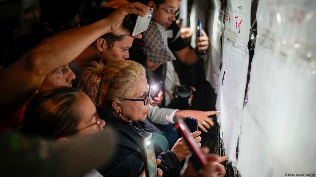 Segundo o CNE, com 80% das urnas apuradas, Maduro havia conquistado 51,2% dos votos, enquanto Edmundo González, o principal candidato da oposição, havia recebido 44%. Um "resultado irreversível", declarou a chefia do órgão.