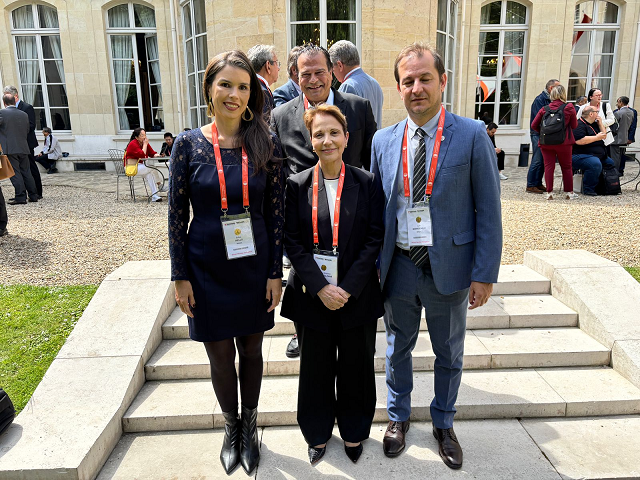 O vice-presidente de Relações Internacionais da CNA, Gedeão Pereira, a senadora Tereza Cristina, vice-presidente da Frente Parlamentar da Agropecuária (FPA), a diretora de Relações Internacionais, Sueme Mori, e o presidente da Federação da Agricultura e Pecuária do Estado do Mato Grosso do Sul (Famasul), Marcelo Bertoni, estiveram na sessão da OMSA na capital francesa.