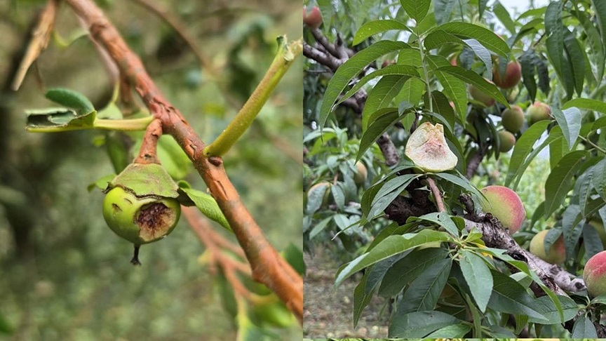 Mesmo sem poder comercializar a produção, a família de Adriana terá de colher todas as unidades de pêssego, maçã, nectarina e ameixa que tiveram a estrutura comprometida. A retirada é necessária para evitar que os frutos danificados apodreçam no pé e transmitam doenças às plantas, agravando mais as perdas.