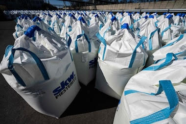 Insumo agora ainda mais valioso: carga aguarda transporte na SKW Piesteritz, a maior produtora de amônia e ureia da Alemanha, no norte do país europeu. Foto John MacDougall/AFP