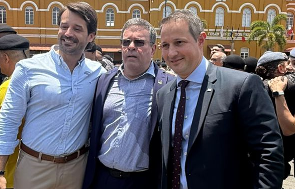 Guilherme Piai, secretário da Agricultura e Abastecimento do Governo do Estado de São, Paulo Junqueira e Guilherme Derrite, que deixou ontem a Secretaria de Segurança Pública do Estado de São Paulo e retorna à Câmara para e reassumir seu mandato de deputado federal (Progressistas)