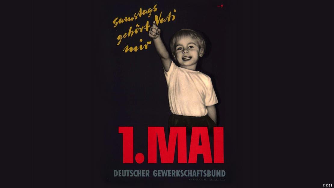 Cartaz de campanha sindical alemã no 1° de Maio de 1956-No sábado, o papai pertence a mim Foto DGB