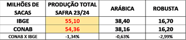 Com base nos primeiros 3 meses da safra 23/24 já existe uma diferença entre os números “oficiais” da Secex* e os números “oficiais” da Cecafé* (considerando uma exportação base Cecafé* para o mês de set-23 em +3,30 milhões de sacas), em “apenas” +950.369 sacas!