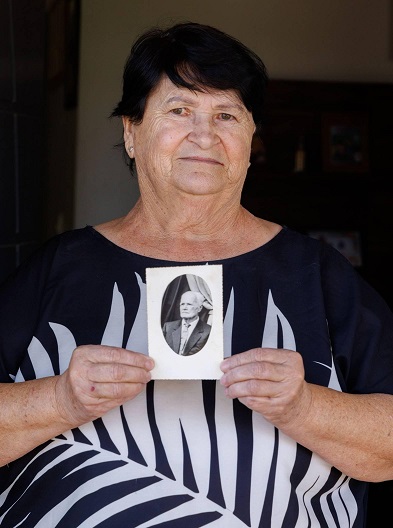 Hildegart Schwarz Schulz com a foto de seu avô, Bruno Schwarz, um dos pioneiros da soja — Foto Fredy Vieira
