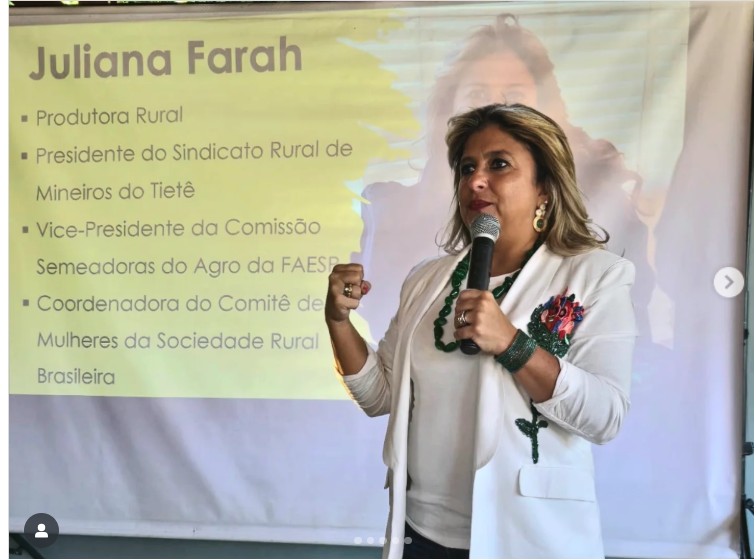 Juliana Farah, companheira de Tirso Meirelles, presidente sub judice da Faesp/Senar. Foto Divulgação