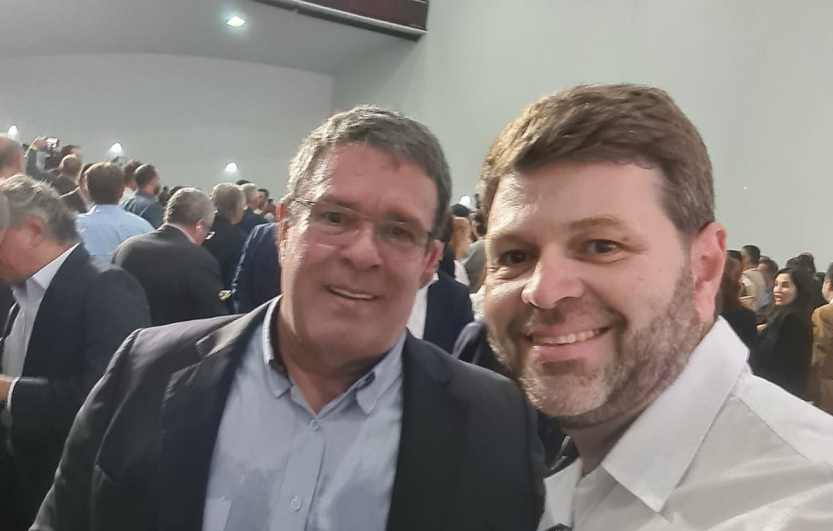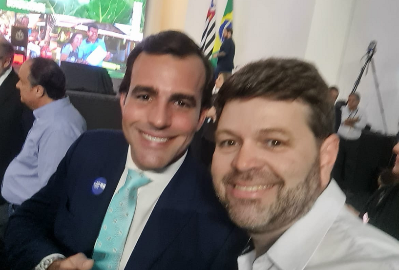 O deputado estadual Lucas Bove (PL) ao lado de João Henrique de Souza Freitas. O parlamentar tem feito reiteradas críticas à gestão do presidente sub judice da Faesp/Senar-SP, Tirso Meirelles