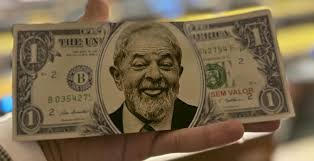 Parlamentares da oposição fizeram uma nota falsa de 1 dólar com a cara do presidente Lula impressa e a levaram para votação do pacote de gastos. Foto Reprodução – Blog Notícias R7
