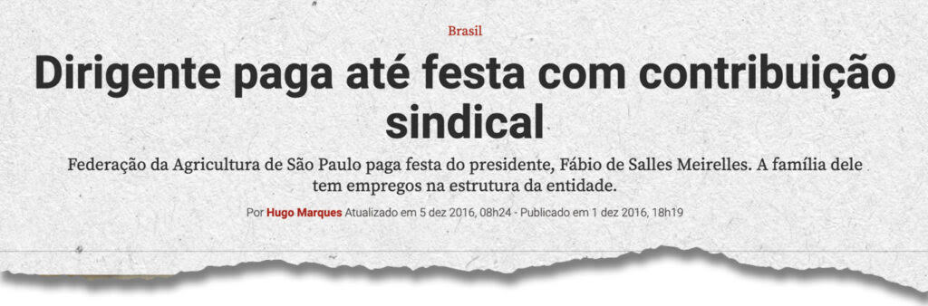 “Expulso” da Faesp/Senar, o Presidente do Sindicato Rural de Parapuã, respaldado por sua diretoria, judicializou questão importante contra a Faesp, Fábio Meirelles, Senar/SP e Conselheiros Fiscais, por conta de utilização de recursos do SENAR/SP para benefícios particulares diversos daqueles previsto pela legislação, e para o qual pede reparação.