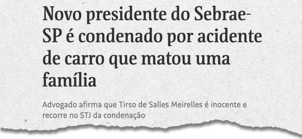 Algumas das tantas e incontáveis denúncias publicadas pela mídia nacional envolvendo Fábio de Salles Meirelles e seu filho Tirso. Ambos se sentem acima da lei e privilegiam interesses seus e dos seus apaniguados. Ao mesmo, imprimem ações persecutórias a quem ousa desafiá-los, ou simplesmente questioná-los, que denotam revanchismo exacerbado e que procuram assassinar reputações de profissionais sérios, éticos e probos além de provocarem impacto devastador junto às suas famílias e vidas profissionais.