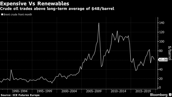 “A indústria petrolífera hoje desfruta de uma enorme vantagem em escala sobre a energia eólica e solar em várias magnitudes – o petróleo respondeu por 33% da energia global em 2018, comparado com apenas 3% da energia eólica e solar”, disse Lewis.