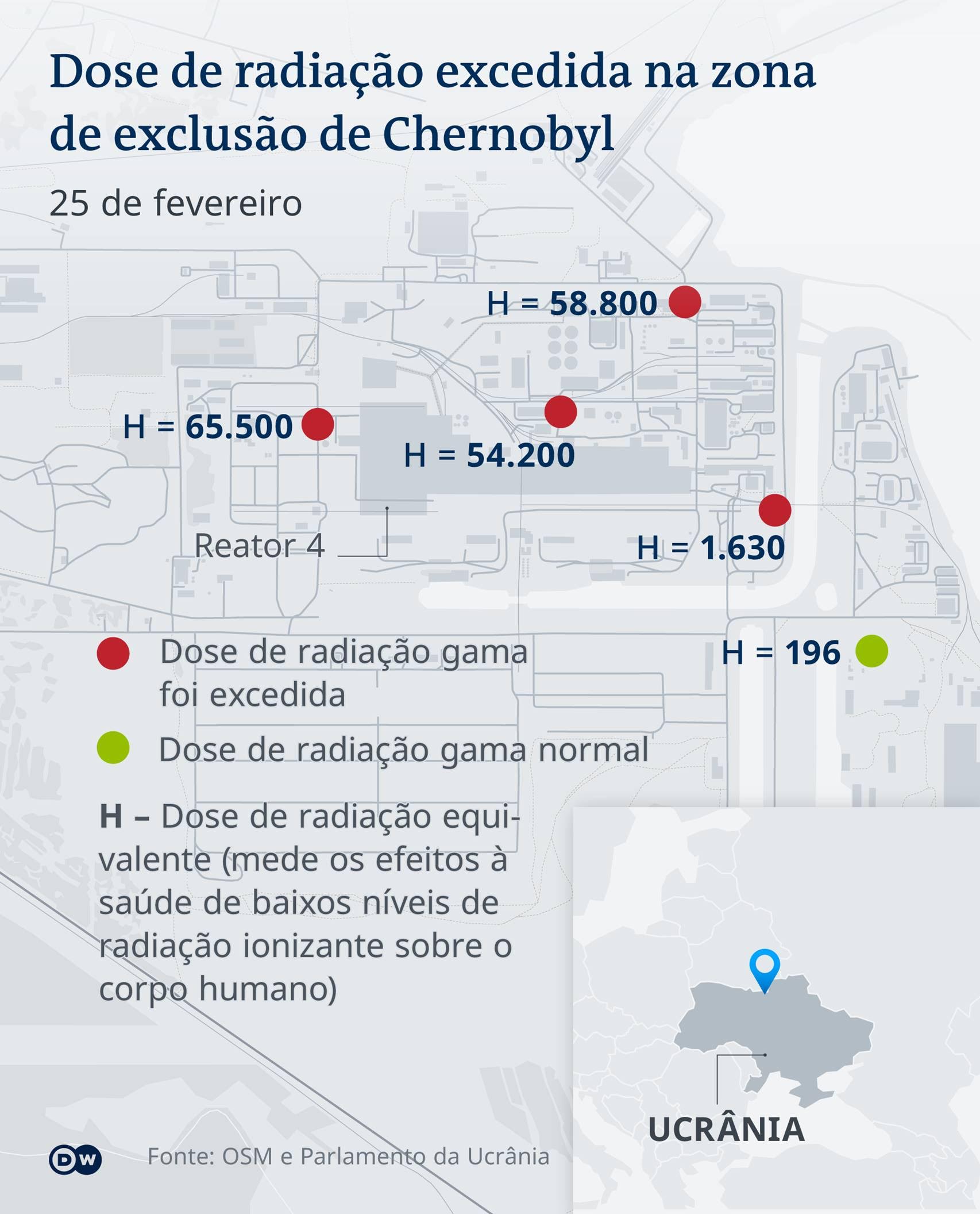 Mas, além da usina nuclear de Chernobyl, há preocupação de que alguns dos 15 reatores nucleares ativos da Ucrânia possam ser atingidos no fogo cruzado entre tropas russas e ucranianas.