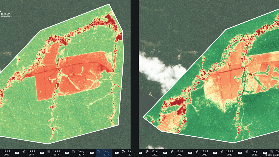 Imagens de satélite de 2017 e 2022 mostram consequências do garimpo ilegal nas terras dos munduruku Foto EOS Data